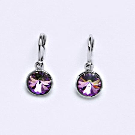 Tyto šperky - dětské náušnice kombinují klasické zapínání s moderním krystalem Swarovski Vitrail Light - fialová. Orientační váha 1,10 g. Zlato 14 ct 585/1000. Velikost náušnice na výšku je 14 mm.