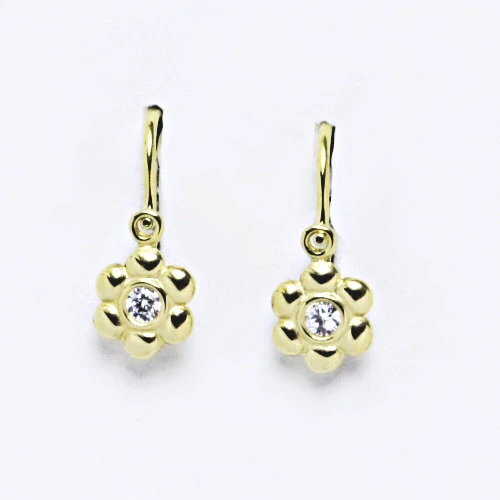 Zlaté dětské náušnice kytičky , žluté zlato , čirý zirkon - VE 213