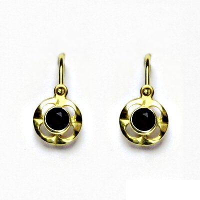 Dětské náušnice, žluté zlato, granát, zlaté náušnice, NK 1380