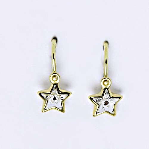 Dětské náušnice, žluté zlato, hvězdičky se Swarovski krystalem bílá NK 1326