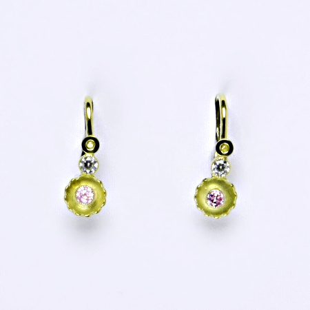 Dětské náušnice ze žlutého zlata s růžovým a čirým zirkonem