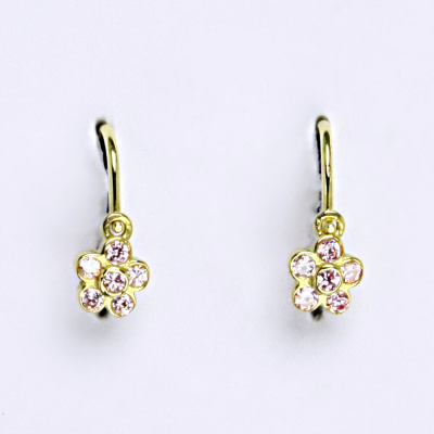 Dětské náušničky zlaté s růžovými zirkony, žluté zlato NK 1384