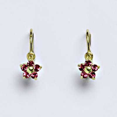 Dětské náušnice ze žlutého zlata se Swarovski krystalem rose. Celková výška náušnice je 13 mm. Materiál je zlato 585/1000.Orientační váha páru dětských náušnic je 1,03 g.