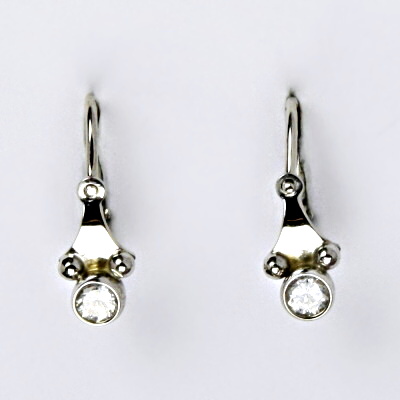 Náušničky jsou vyrobeny z bílého zlata 14 karátů 585/1000, zdobeny syntetickým čirým zirkonem. Zapínání na náušničkách je klasické dětské zapínání na patent. Celková velikost náušnice je 15 mm.