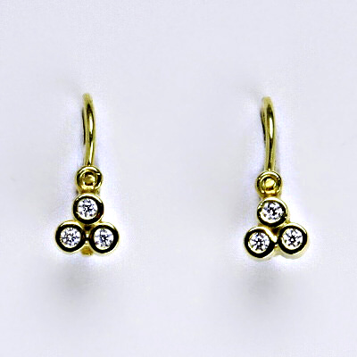 Náušnice jsou vyrobeny ze žlutého zlata 14 karátů 585/1000, jsou zdobeny syntetickým čirým zirkonem. Zapínání na náušnicích je klasické dětské zapínání. Celková velikost náušničky je 14 mm.
