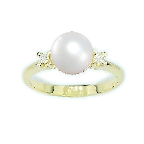 Luxusní zlatý prsten zdobený pravými diamanty a přírodní kulatou perlou bílou o rozměru 7,5 mm. Diamanty, jimiž je prsten osázen mají průměr 1,9 mm, 1 ks má 0,0275 ct - ve šperku je tedy dohromady 0,055 ct. Kvalita diamantu Si/G. Orientační hmotnost 3 g (ve velikosti 56). Šperk je vyhotoven ze žlutého zlata ryzosti 585/1000.