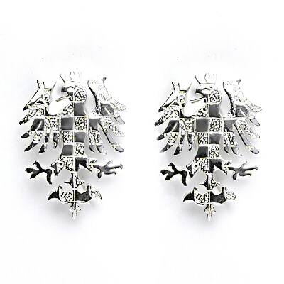 Stylové manžetové knoflíky zdobené detailně propracovanou heraldickou figurou - moravská orlice. Zdobná část měří 28 mm na výšku a 20 mm na šířku, celková délka knoflíků je 19 mm, orientační hmotnost 11,36 g. Vyhotoveno ze stříbra ryzosti 925/1000.