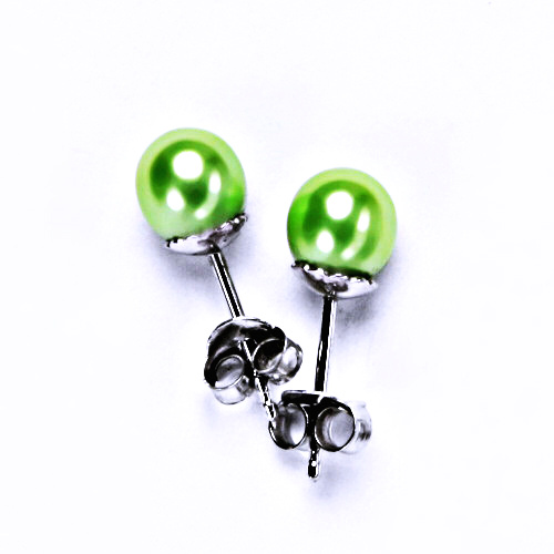 umělá perla zelenkavá 6 mm, stříbrné šperky náušnice, puzeta