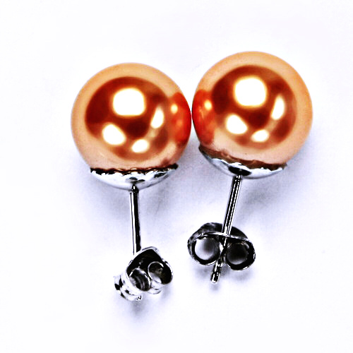 umělá perla lososová 10 mm, stříbrné šperky náušnice, puzeta
