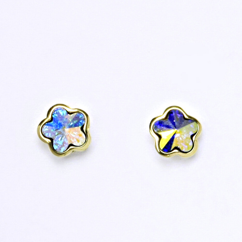 NŠ 1297 Zlaté náušnice na šroubek, žluté zlato, krystal AB Swarovski