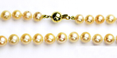 Náhrdelník přírodní říční perly, žluté zlato, lososové perly 46 cm - 4821 poslední kus