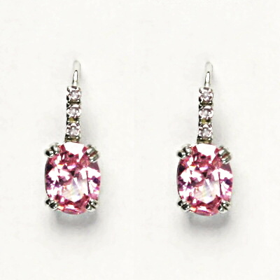 Náušnice zdobí čiré zirkony a pink zirkon