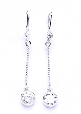 Stříbrné náušnice zdobené zirkonem o rozměru 6 mm. Celkový rozměr náušnic je 46 mm. Materiál je stříbro 925/1000.