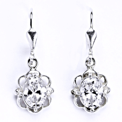Stříbrné náušnice se syntetickým čirým zirkonem se zapínáním na klasický patent. Velikost zirkonu je 8 x 6 mm. Celková vyška náušnice je 27 mm. Materiál je stříbro 925/1000. Náusnice nájí povrchovou úpravu čisté rhodium.