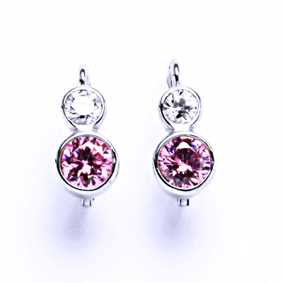 Stříbrné náušnice na klasické patentové zapínání zdobí zirkony čirý a pink