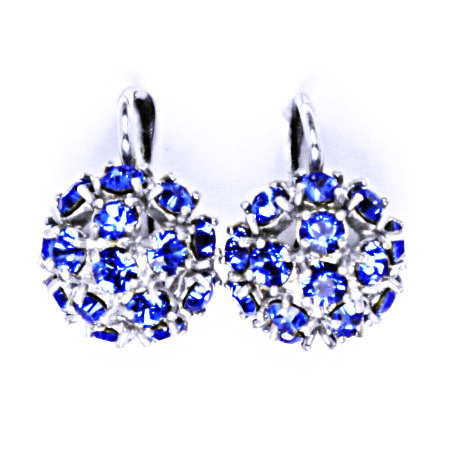 Náušnice stříbrné půlkoule s krystalem Swarovski Saphire, NK 1337