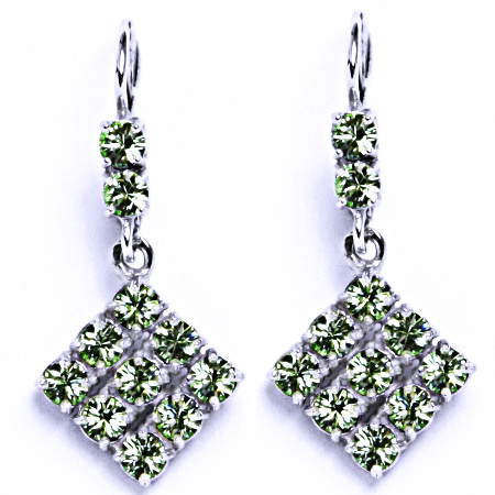 Celková velikost náušnice na výšku je 32 mm. Náušnice je opatřena zapínáním na patent a je osazena krystalem Swarovski chryzolit. Záruka na vypadávání kamenů, náušnice je celá ze stříbra a kameny jsou pevně uchyceny v kovu.