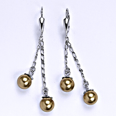 Stříbrné náušnice se dvěma Swarovski perlami zavěšenými na řetízku. Velikost perly je 8 mm. Barva perly je bronze. Nášnice mají klasické zapínání na patent. Celková délka náušnic je 58 mm.