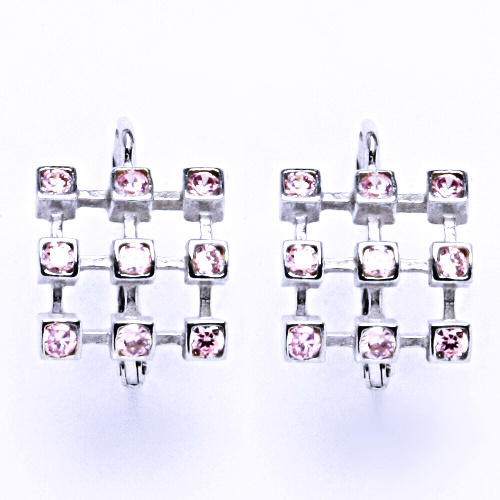 náušnice se zirkony stříbrné, růžový zirkon. Zapínání je patent.
