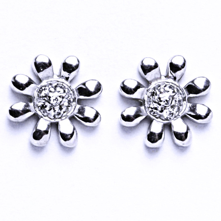 Stříbrné náušnice na šroubkové zapínání květiny jsou osazeny syntetickými čirými zirkony