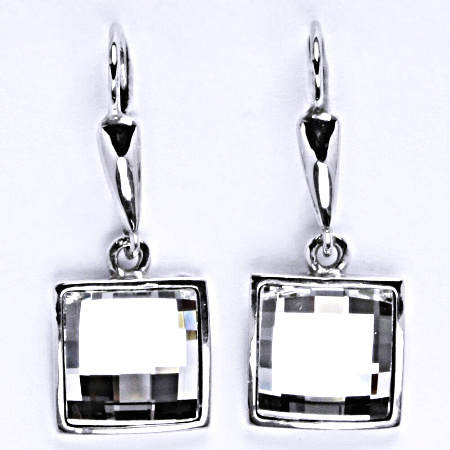 Náušnice ze stříbra s čirým krystalem Swarovski. Velikost krystalu je 10 x 10 mm. Náušnice mají povrchovou úpravu čisté rhodium.