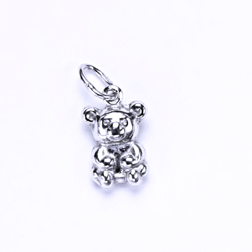 Stříbrný 3D přívěsek medvídka o velikosti 10 x 8 mm.