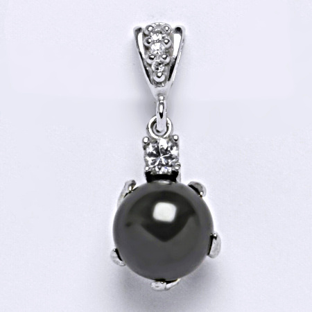 Stříbrný přívěšek se Swarovski perlou barvy black. Velikost perly Swarovski je 10 mm. Celková délka přívěšku je 26 mm.