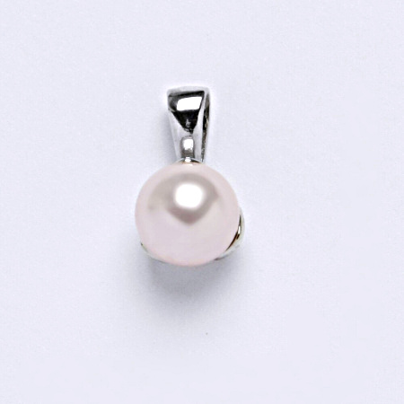 Stříbrný přívěšek se Swarovski perlou barvy rosaline. Velikost perly Swarovski je 8 mm. Celková délka přívěšku je 14 mm.