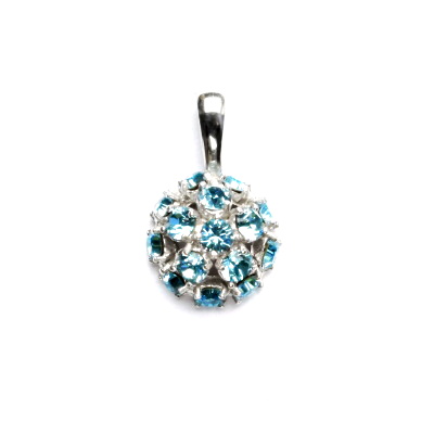 Stříbrný přívěsek půlkoule s pevným úchytem, zdobený krystaly Swarovski v barvě Light turquise. Velikost přívěsku je 20 mm. Materiál je stříbro 925/1000. V nabídce máme také náušnice do soupravy.