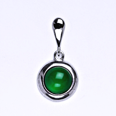 Stříbrný přívěsek s přírodním kamenem green agate. Velikost kamene je 7 mm. Celková výška přívěsku je 21 mm. Materiál je stříbro 925/1000.