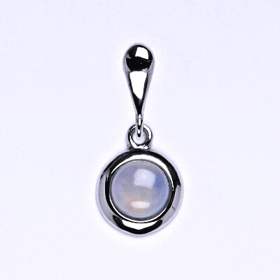 Stříbrný přívěsek s přírodním kamenem chalcedon. Velikost kamene je 6 mm. Celková výška přívěsku je 20 mm. Materiál je stříbro 925/1000.
