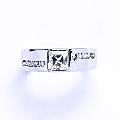 Stříbrný prsten je zdoben zirkony čiré barvy.Prsten patří mezi šperky s povrchovou úpravou čistého Rhodia,které nezpůsobuje žádné alergie.