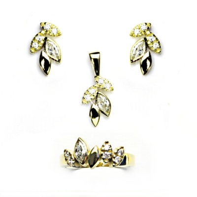 Sada zlatých šperků VE 87, VP 90, VR 10, čiré zirkony, žluté zlato