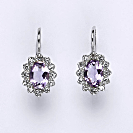Stříbrné náušnice Kate, přírodní ametyst světlý a čiré zirkony - VE 247