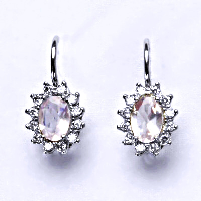 Stříbrné náušnice s čirými zirkony a přírodním růženínem o velikosti 7x5 mm. Materiál náušnic je stříbro 925/1000. Náušnice jsou rhodiované. Orientační váha je 2,77 g. Celková výška náušnice je 18 mm.
