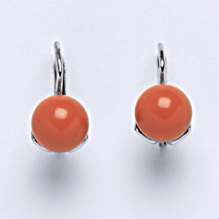 Stříbrné náušnice se Swarovski perlou v barvě coral. Velikost Swarovski perly je 8 mm. Náušnice se zapínáním na klasický patent. Materiál je stříbro 925/1000.