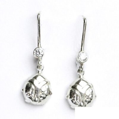 Stříbrné náušnice s beruškou o rozměru 9x8 mm. Materiál je stříbro 925/1000. Celková výška náušnice je 27 mm. Orientační váha náušnic je 4,16 g.