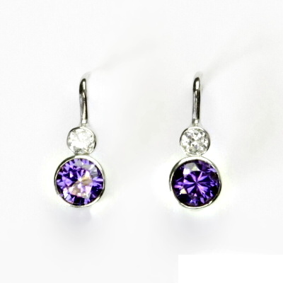 Stříbrné náušnice, zirkony čirý a ametyst - NK 1096