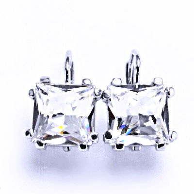 Stříbrné náunice jsou zdobeny Swarovski krystalem v čiré barvě o rozměru 10x10 mm. Náušnice mají patentové zapínání. Materiál náušnic je stříbro 925/1000.