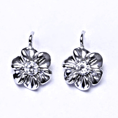 Stříbrné náušnice ve tvaru kytičky s čirým zirkonem o průměru 4 mm. Materiál je stříbro 925/1000. Náušnice jsou rhodiované. Orientační váha náušnic je 2,75 g. Rozměr náušnice: 11,5 mm na šířku a celková výška náušnice je 17 mm. Zapínání je na patent.a