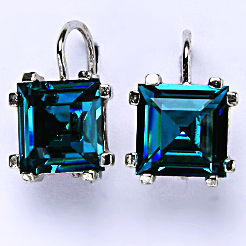 Stříbrné náunice jsou zdobeny Swarovski blue krystalem o rozměru 10x10 mm. Náušnice mají patentové zapínání. Materiál náušnic je stříbro 925/1000.
