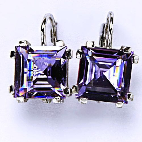Stříbrné náunice jsou zdobeny Swarovski krystalem v barvě lavender o rozměru 10x10 mm. Náušnice mají patentové zapínání. Materiál náušnic je stříbro 925/1000.