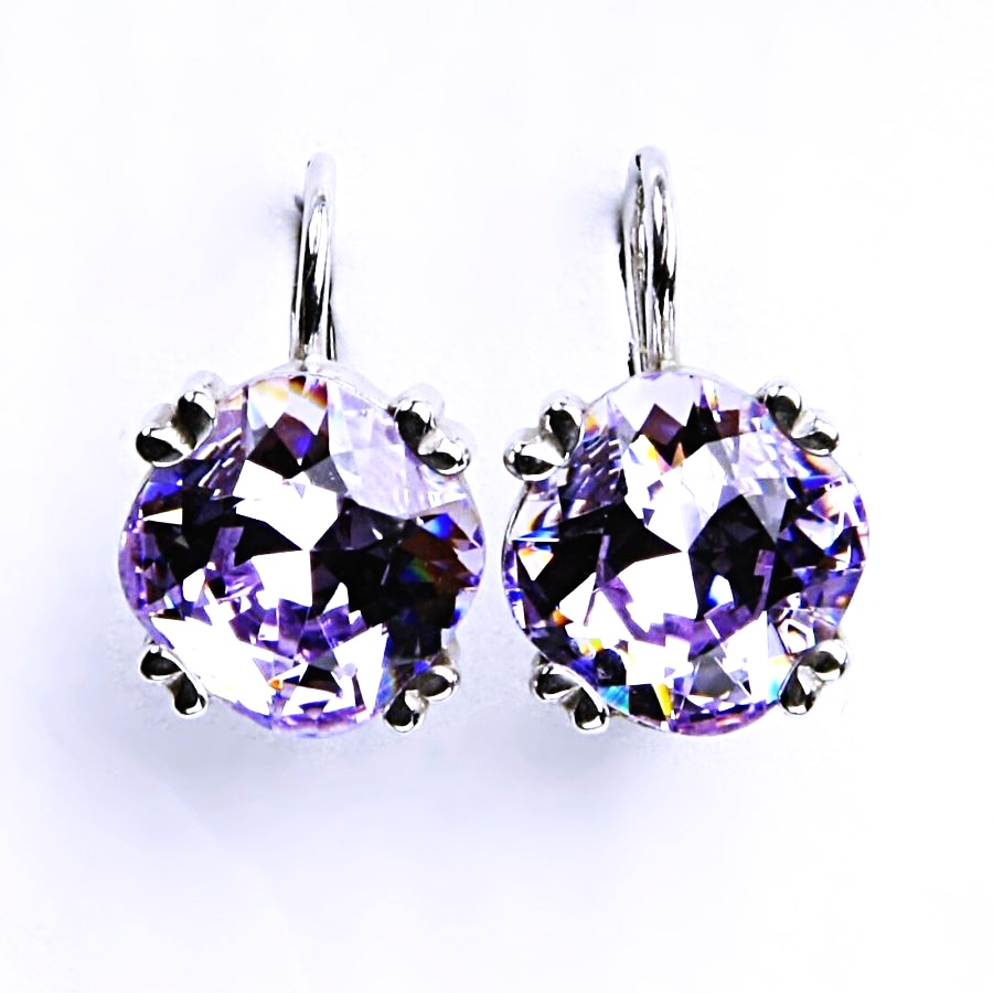 Stříbrné náušnice s krystalem Swarovski v barvě violet o veliskosti 10 mm. Náušnice mají klasické patentové zapínání a povrchovou úpravu čisté Rhodium. Materiál náušnic je stříbro 925/1000. Celková výška náušnice je 17 mm.