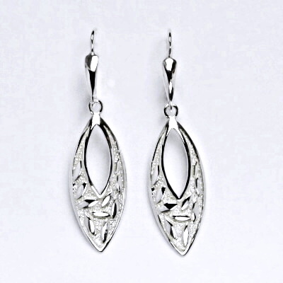 Stříbrné náušnice se zapínáním na klasický patent. Celková výška náušnic je 47 mm.Orientační váha náušnic je 4,43 g. Materiál je stříbro 925/1000.