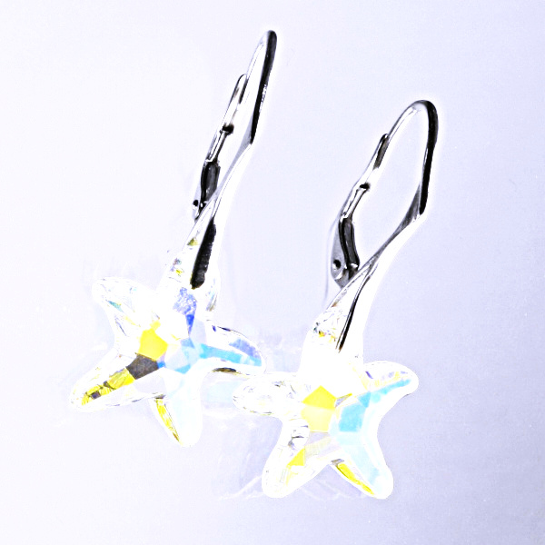Stříbrné náušnice na patent s krystalem Swarovski(mořská hvězdice 20 mm-AB Crystal)NK 1295