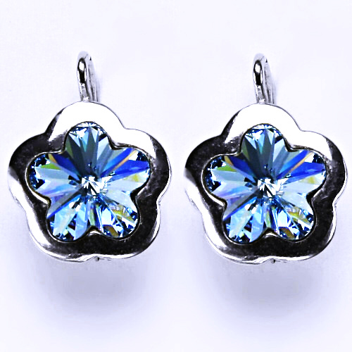 Stříbrné náušnice na klasické patentové zapínání s krystalem Swarovski ve tvaru kytky.Barva- Akvamarin-světle modrá.Velikost krystalu - 10 mm.Kvalitní přilepení minimalizuje ryziko ztráty.Tyto šperky jsou s povrchovou úpravou - čisté Rhodium, která nez