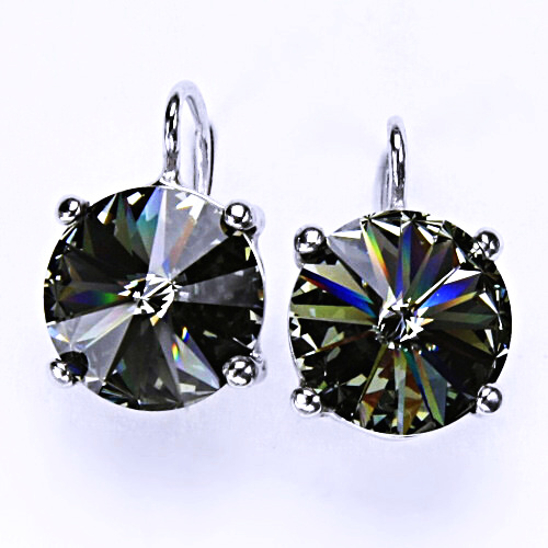 Stříbrné náušnice na patent s krystaly Swarovski Rivoli (barva Black diamond) NK 1188