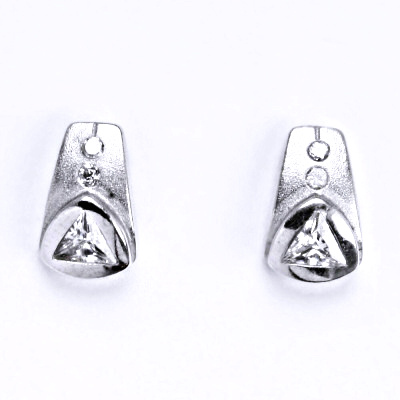 Stříbrné náušnice s čirým zirkonem se zapínáním na šroubek. Materiál je stříbro 925/1000. Náušnice mají povrchovou úpravu čisté rhodium.