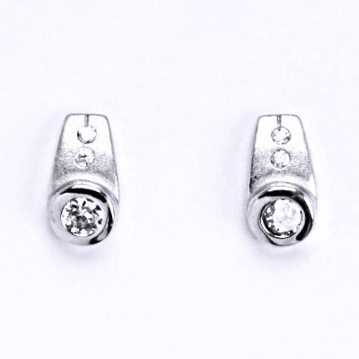 Stříbrné náušnice s čirým zirkonem se zapínáním na šroubek. Materiál je stříbro 925/1000. Náušnice mají povrchovou úpravu čisté rhodium.