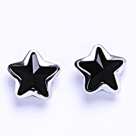 Stříbrné náušnice na šroubek jsou ozdobeny krystalem Swarovski hvězda. Hvězdy mají velikost 10 mm. Barva jet černá. Tyto šperky mají povrchovou úpravu - čisté Rhodium, které nevyvolává žádné alergické reakce. K těmto náušnicím náš E-shop nabízí i přívě